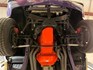 This Cuda is dressed in one of the most iconic colors of the day, Plum Crazy. This was a great color in the day, but now done in a base/clear paint the colour is stunning and truly pops. The black vinyl top and strips really make this car stand out.